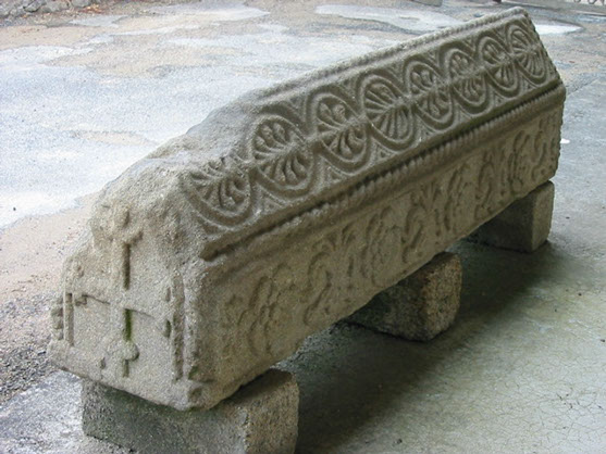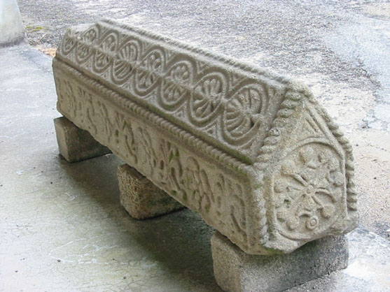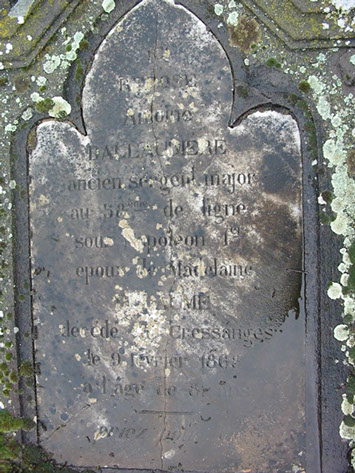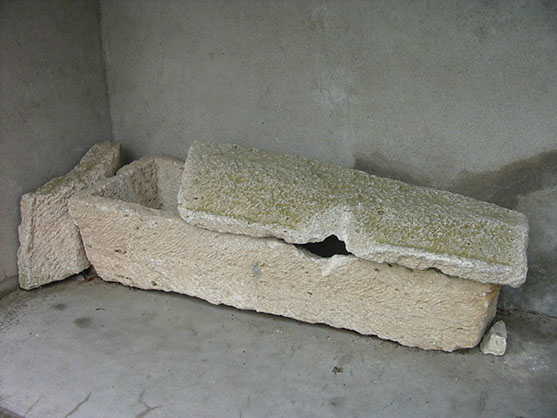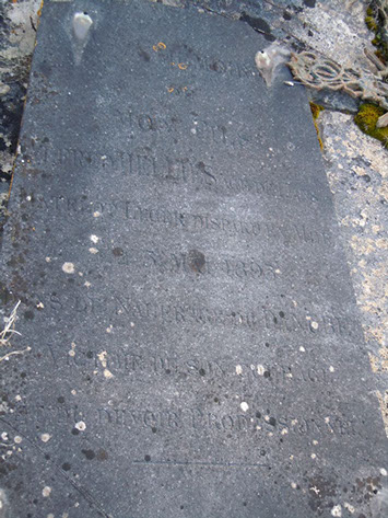 Les inscriptions sont sur une plaque tombée de la stèle verticale.