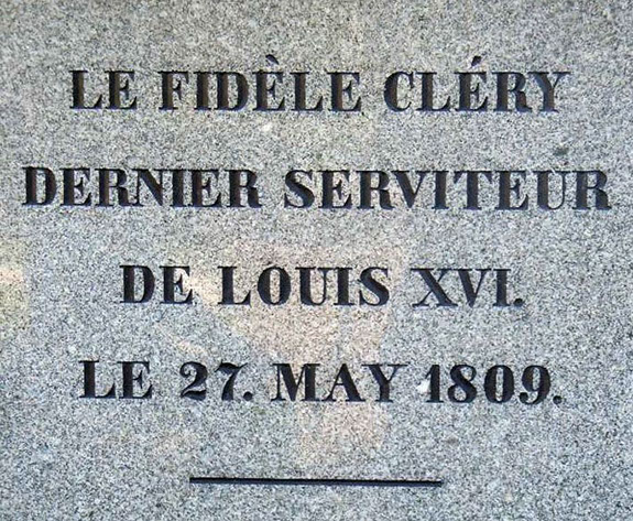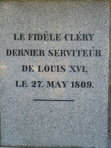 A Hiertzing, aux abords de Vienne en Autriche, dans le cimetière, à proximité du château de Schönbrunn, on peut voir une stèle funéraire portant la mention suivante «ᅠLE FIDÈLE CLÉRY DERNIER SERVITEUR DE LOUIS XVI. LE 27. MAY 1809ᅠ», sur une tombe régulièrement entretenue.