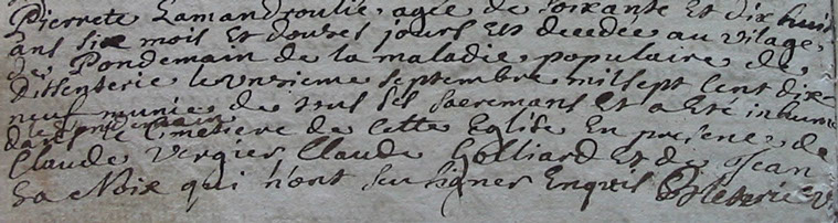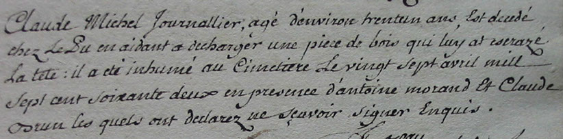 1725, Courpière (63), un homme originaire de la région de Nevers (58) meurt dans son sommeil au bord d’un chemin. (A.D.63, registre des sépultures de 1723)